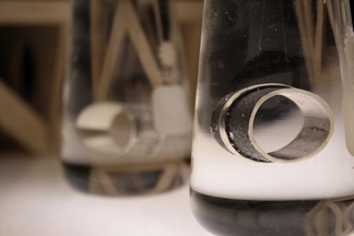 Дизайн колец выполнен в уникальном стиле молодого дизайнера, который сочетает в себе минимализм и японский хаос, прекрасно дополняя одежду и обувь, изготовленную Айданой. Концептуальность колец выражена в оригинальной упаковке, и методе извлечения. Человек разбивает стеклянную колбочку. Но волшебство не пропадает, оставаясь результатом в цельном куске серебра.