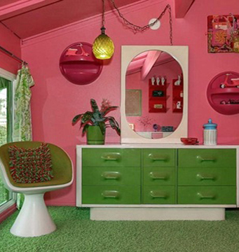 В Лос-Анджелесе на торги выставлен необычный дом, полностью воспроизводит интерьер 70-х годов. Яркий дом, площадью 1644 квадратных метра, состоящий из трех спален и стольких же ванных комнат, гостиной, кухни со столовой и террасы с гидромасажной ванной, расположенной на крыше дома. Запоминающийся интерьер: яркие цвета, материалы, предметы мебели и аксессуары – все, словно из прошлого. Кажется, что время в этом доме остановилось в далеком 1973 году, когда он и был построен. Нынешние хозяева приобрели его за пятьсот пятьдесят тысяч долларов в 2005 году, новая стартовая цена составит семьсот сорок девять тысяч долларов.