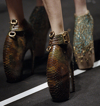 Дом Моды ALEXANDER MCQUEEN опубликовал в сети Instagram фото, свидетельствующее о том, что выпущены 3 новые модели легендарных Armadillo. Обувь сделана из дерева и кожи питона. Все 3 пары будут проданы на аукционе в Италии, вырученные средства будут переданы ЮНИСЕФ, в помощь пострадавшим от землетрясения в Непале. Напомним, что в свет Armadillo вышли в 2010 году, но не были запущены на конвейер, и на данный момент существует всего 21 пара оригинальных ботильонов.