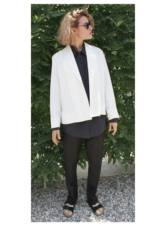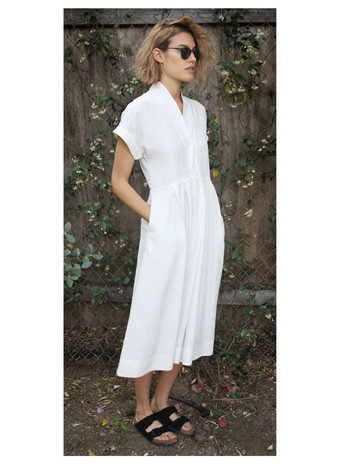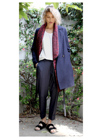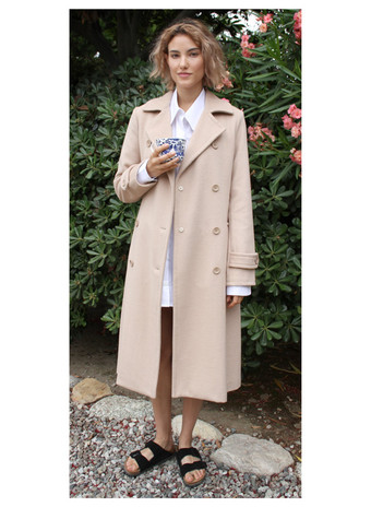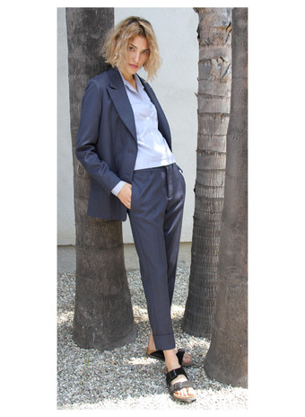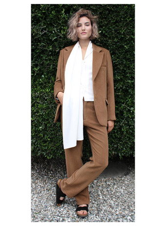 Коллекция получилась в стиле самой Дейн: базовые оттенки, прямые лаконичные силуэты и простой крой. Агнесс давно известна своей любовью к предметам мужского гардероба, которым нашлось место и в дебютной коллекции бренда.