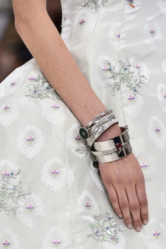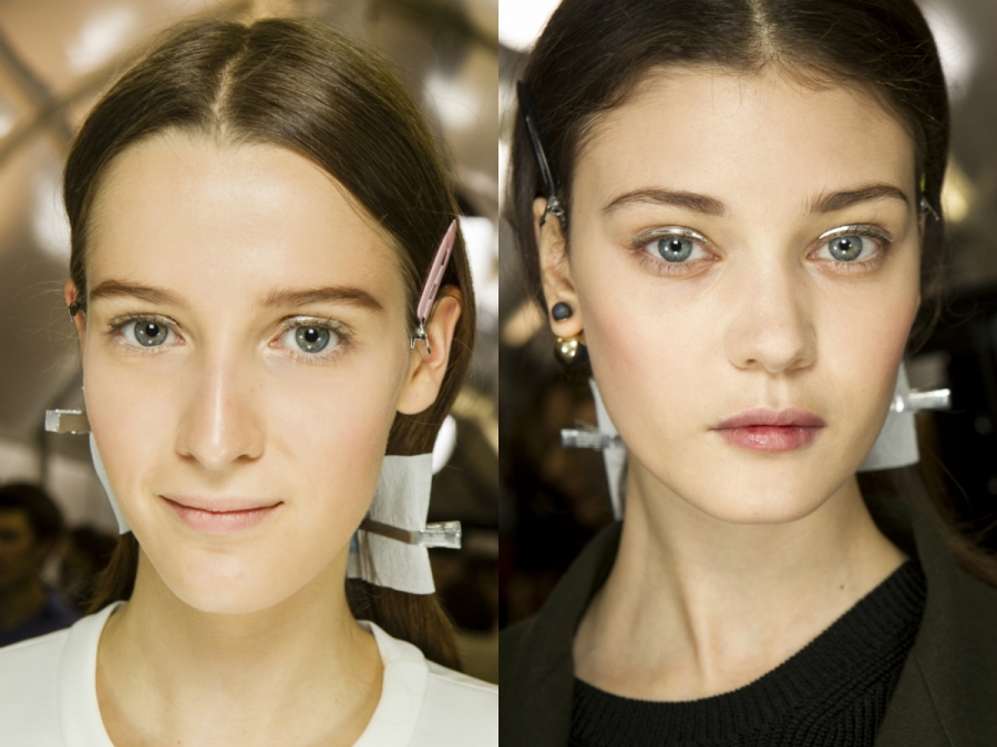 Однако внимание публики было приковано не только к романтичным образам моделей, но также и к невероятному макияжу. Креативный директор по макияжу Питер Филипс сыграл на контрасте классики и футуризма, вдохновившись коллекцией Рафа Симонса. Для того чтобы придать образу моделей хрупкость, визажист использовал белые и светло-желтые оттенки теней, завершив макияж серебряными полосками на веках.