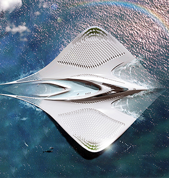 Будущее ближе, чем мы предполагали. Французский архитектор Жак Ружери представил концепт плавучего города, прямо как в фантастических фильмах. Главной особенностью City of Mériens является полная автономность и безвредность для окружающей среды. Размеры такого строения весьма впечатляющие - около 900 метров в длину, и шириной – 500. Вмещать судно будет до 7000 людей, в основном это ученые и студенты.