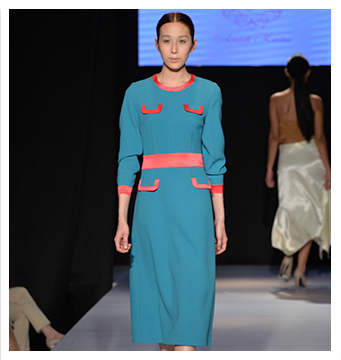 DAMILYA ZHUMABEK, продемонстрировавшая коллекцию «Дыхание Востока», была удостоена чести открывать дневные показы второго дня. Дизайнер искусно «смешала» черный цвет с гаммой насыщенных оттенков осенней листвы – от изумрудно-зеленой до палево-желтой. Лаконичность силуэтов льняных платьев, туник и брючных костюмов удачно уравновешивалась пестрой геометрией рисунка: вертикальные полосы самых разнообразных оттенков выглядели свежо и современно. Многие образы были дополнены аксессуарами: изготовленными вручную поясами и расшитыми брошками. А заплетенные на восточный манер косы манекенщиц, перехваченные яркими лентами в тон нарядам, придавали показу дополнительную нотку юности и легкости. В рамках Юбилейного сезона KFW автор исповедовала новую эстетику национальной одежды, пытаясь стереть границу между Востоком и Западом и, на мой взгляд, ей это вполне удалось.