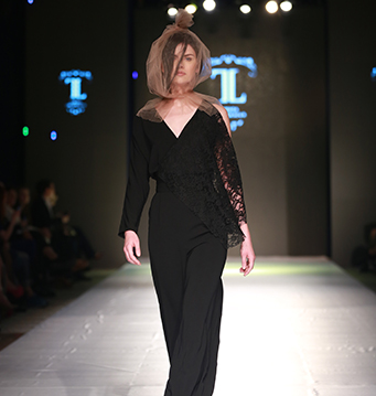 В то время как дизайнер из Грузии Tiko Nebieridze представила коллекцию в розово-чёрном цвете с использованием принта «гусиная лапка». Финальным образом коллекции стало шикарное чёрное платье в пол.