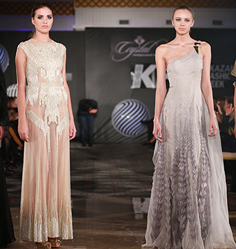 AIDA KAUMENOVA (Казахстан). Коллекция Модного Дома AidaKaumeNOVA словно пропитана солнцем степей и пением весенних птиц. Весна на «Шелковом Пути». В небе летают ласточки – изящные, маленькие птицы, которые являются символом свободы, молодости и красоты. Словно повторяя красивые отливы на крыльях ласточки, в коллекции используются такие материалы, как бархат, велюр и паеточные ткани.