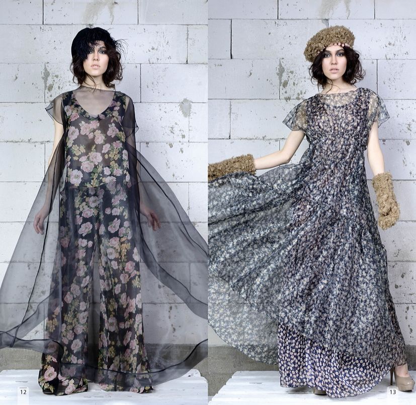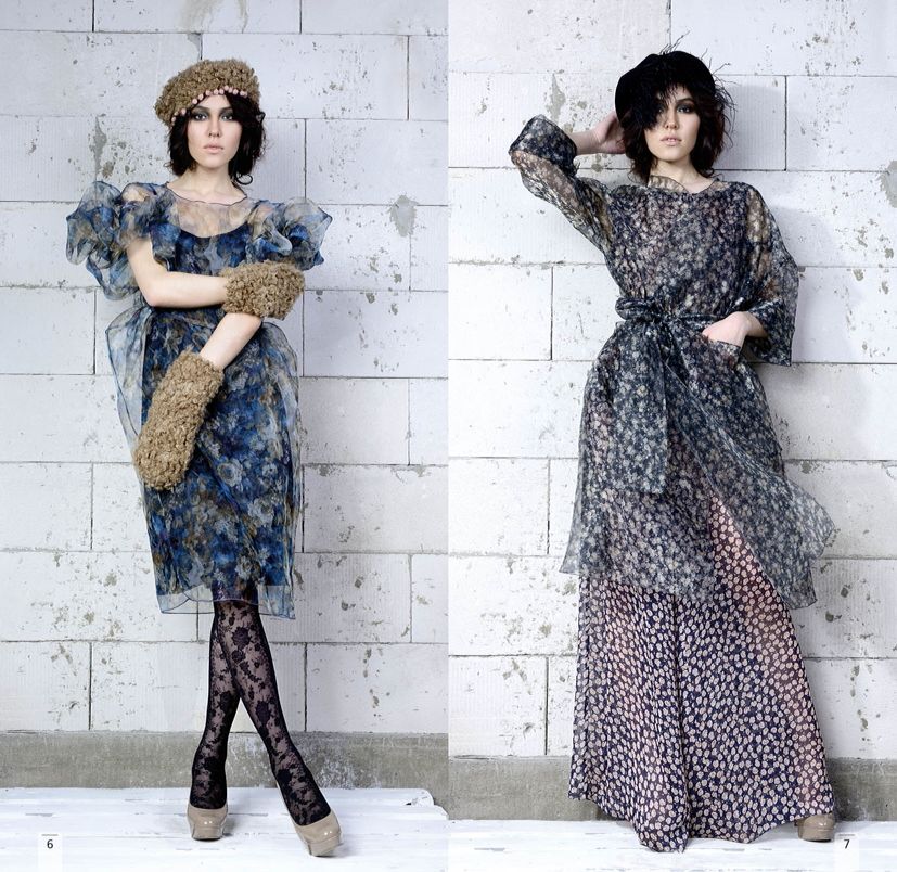 В новом сезоне Лария Джакамбаева и Татьяна Цой, вдохновившись романтикой и чувственностью экранных красавиц, предлагают почувствовать себя в центре внимания и примерить на себя летящие ткани и женственные силуэты, отлично дополненные цветочными принтами и трогательными аксессуарами в виде рукавиц и шапочек.