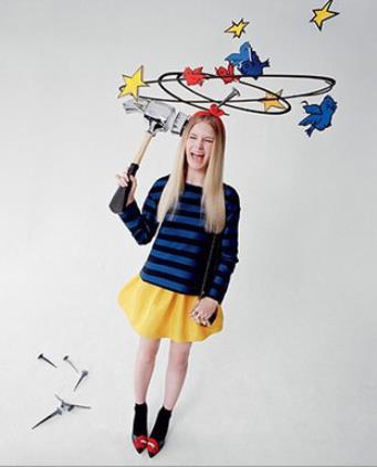 Кампания состоит из серии парных снимков Тима Уокера, на которых Лотти изображена в двух образах: слева с серьезным лицом демонстрирует наряды марки, а справа предстает в роли героини красочных комиксов с яркой мимикой и весьма комичным настроением снимков.