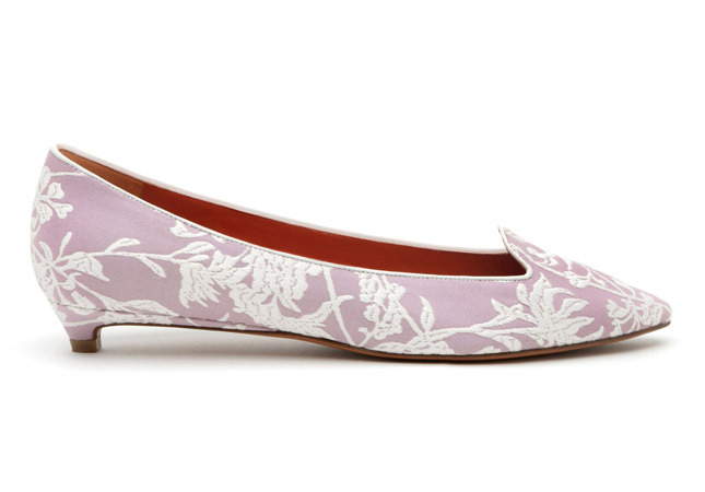 Набивная вышивка в восточном стиле в форме цветов, бутонов и побегов, созданная совместно с известным производителем тканей Rubelli, украсила обувь и аксессуары от Santoni. Дизайнеры бренда сделали ставку на мягкие, нежные цвета и эффектные, немного отдающие винтажем авторские узоры - и не прогадал. Лодочки, балетки и слипперы в пастельных тонах разлетаются на ура, да и маленькие элегантные сумочки находят себе достойное место в гардеробах знаменитых fashionista. Такие детали гардероба украсят наряд девушки, решившей сегодня отойти от образа железной леди и погрузившейся в весну с головой.