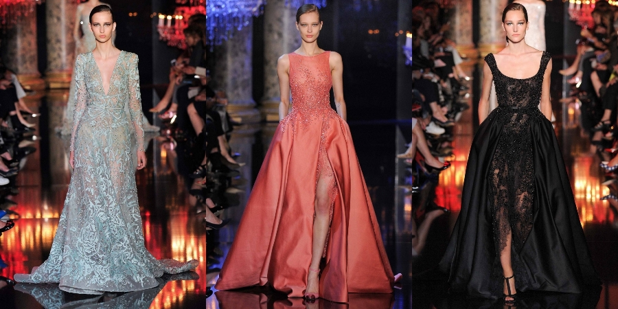 Еще один ливанский модельер Эли Сааб создал кутюрную коллекцию в своем духе. Мастер вечерних нарядов добавил больше сверкающего декора и жемчуга, изящного кружева и помпезности. Однако забыл сказать моделям, что нужно сделать менее страдальческое лицо.