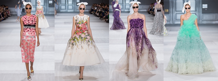 Дизайнер модного дома Джамбаттиста Валли создал поистине летнюю коллекцию, в которой идеально сочетались популярные сейчас принты: цветы и полоска. Вдохновленный воспоминаниями о живописных садах на юге Испании, кутюрье завершил показ яркими платьями с пышными юбками.