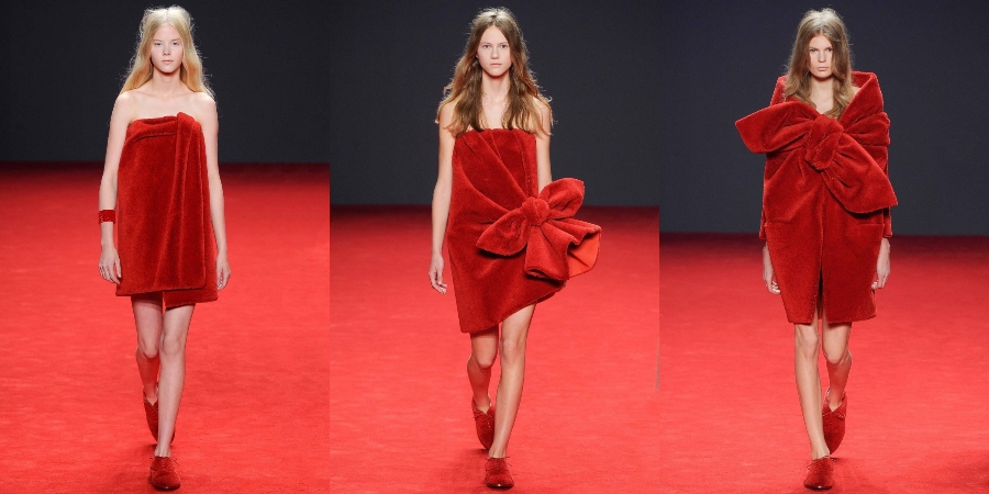 Дизайнеры Виктор Хорстинг и Рольф Снорен удивили критиков коллекцией, выполненной полностью в красном цвете с незамысловатым декором. Хотя ткани отличаются по фактуре, создается впечатление, что модели укутались в полотенца после душа! Про удобные банные тапочки дизайнеры тоже не забыли.