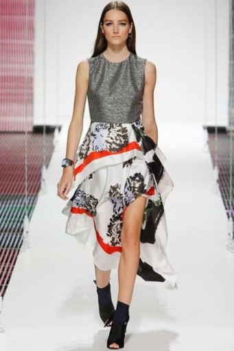 В новом сезоне дизайнер смело экспериментировал как с силуэтами, так и с рисунками: среди ключевых моментов коллекции - асимметрия и всевозможные сочетания разных принтов, от привычных цветочных до абстрактных.