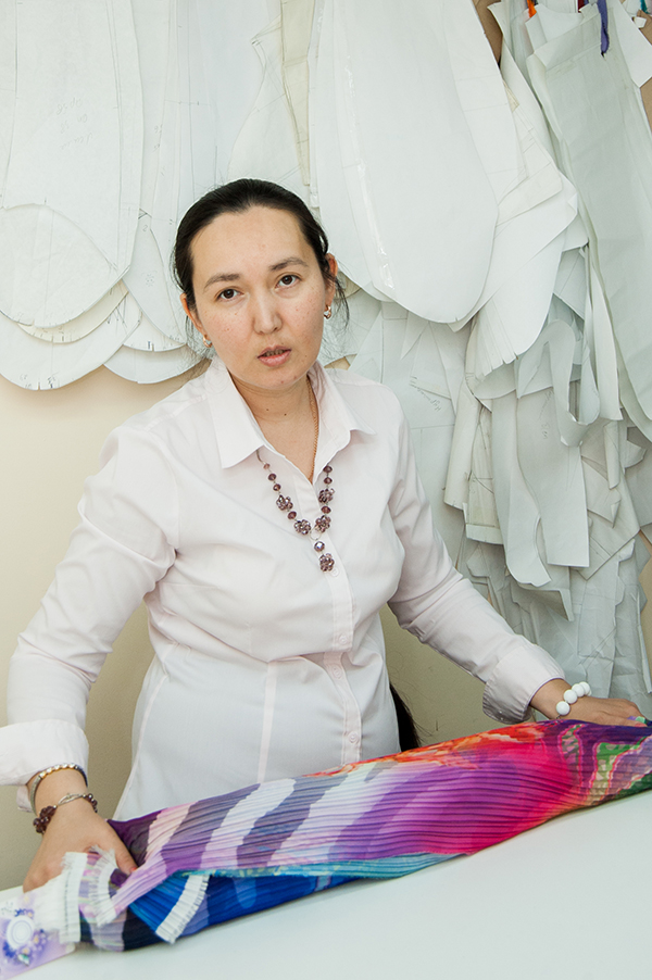 Пока мы беседуем с Гаухар, вся команда дизайнера находится в процессе работы, а сама Гаухар, не прерывая разговора, неторопливо показывает нам любимые эскизы и ткани, которые привозит из разных уголков земного шара.