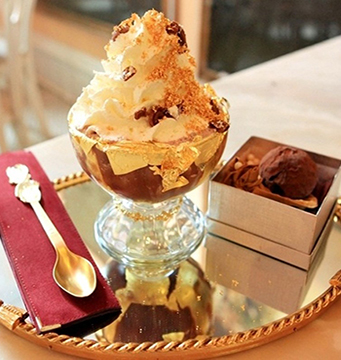 Самое дорогое мороженное «Frozen Haute Chocolate», которое подается в одном из ресторанов Манхетана, занесено в книгу рекордов Гиннеса и считается настоящим шедевром кулинарного мастерства. Десерт изготовлен из редчайших сортов какао-бобов, собираемых по всей планете, верхушка десерта посыпана золотой стружкой 23-каратного съедобного золота. Подается такой десерт в специальной посуде. Фужер и небольшая ложечка сделаны из золота, а ложечку украшают бриллианты различных цветов. Кстати, на фужере вы можете обнаружить золотой браслет. Вместе с мороженным в специальной коробочке подается шоколадный трюфель. Цена такого лакомства составляет $ 25 000.
