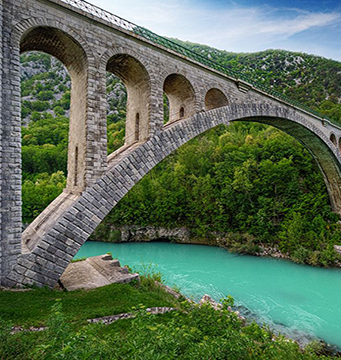 Мост Солкан, Словения. В 1900 году началось строительство одного из главных железнодорожных сообщений между Словенией и Италией – моста Солкан. Протяженностью в 220 метров мост Солкан являет собой не только один из самых интересных и живописных маршрутов, но и с 1985 года провозглашен памятником архитектуры и национальным достоянием Словении. Особенность моста – главная опорная арка длиной 85 метров, уступающая по своей величине лишь мосту Longmen Bridge, что располагается в городе Лоян, Китай.