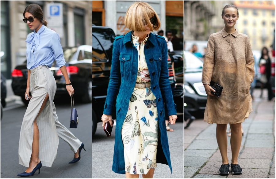Одна из тенденций уличной моды последних в мировой моде лет – отказ от вычурной экстравагантности. Подходит к концу та эпоха, когда нужно было нарядиться как сумасшедший попугай, чтобы попасть в объективы фотографов. Вкус гостей показа стал более тонким, образы – простыми и элегантными. Обычные вещи плюс яркие акценты – вот формула привлекательности в современной уличной моде. Еще один модный тренд – обувь на плоской подошве, которая была замечена на большинстве показов сезона весна-лето 2015. Кеды и кроссовки вытесняют туфли на шпильке, дав дорогу удобству и непринужденности.