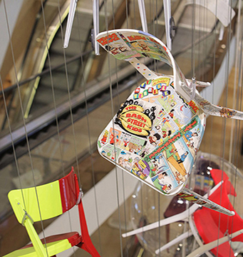 Инсталляцию из 90 стульев расположили в холле Selfridges, подвесив на разную высоту среди нитей, имитирующих нечто, вроде мебельного дождя.