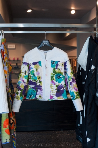 Жакет Kiori. Марка Kiori давно любима алматинскими модницами за простой крой, носибельность и яркую цветовую гамму. Укороченный жакет не стал исключением. Актуальный цветочный принт в обрамлении белого цвета способен освежить любой образ. Жакет будет отлично смотреться как с джинсами или брюками, так и поверх легкого платья.