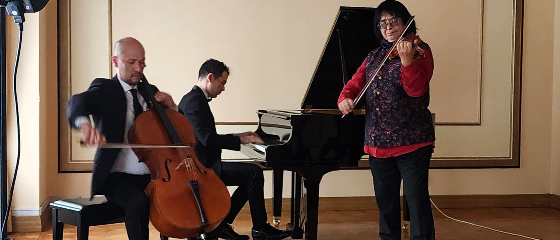 Беспрецедентная премьера состоялась в Алматы. Музыканты выступили на сцене КазНТОБ им. Абая с уникальной двухчасовой программой и исполнили произведения В.А.Моцарта, К.Дебюсси, Ф.Листа Н. Мендыгалиева, Г. Венявского и Ф.Мендельсона.