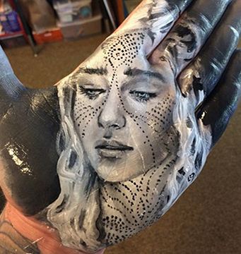 Художник из Калифорнии Рассел Пауэлл полотном для творчества выбрал ладонь левой руки.